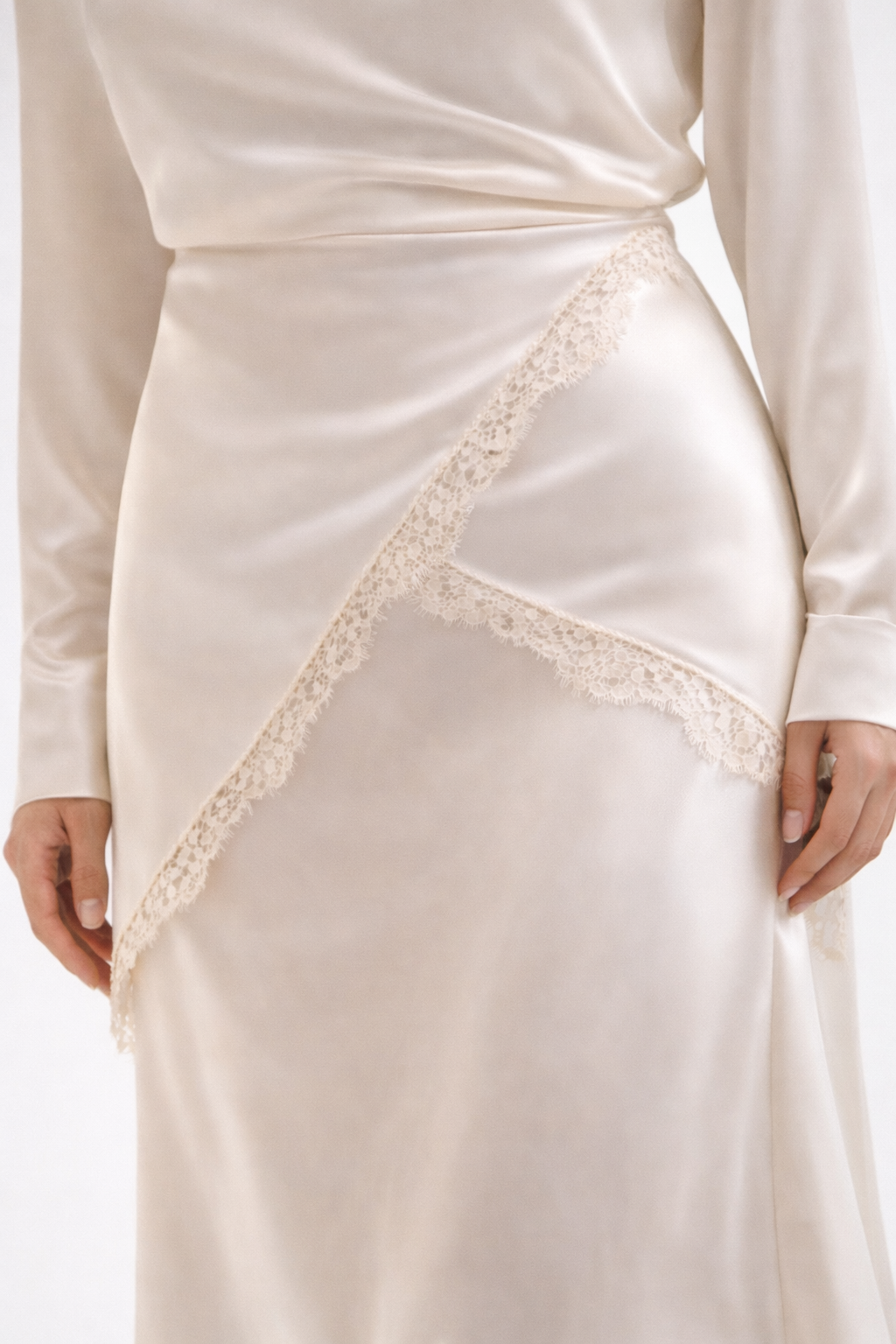 Ein wunderschönes elegantes Set mit spitzen Details, zum umbinden. Besteht aus einem Rock und einem Oberteil. Stoff ist Satin Imitat.