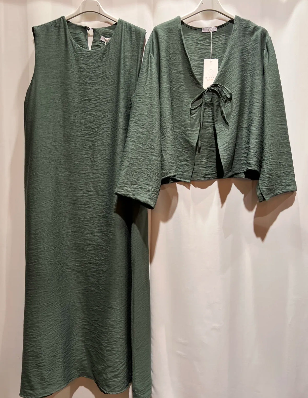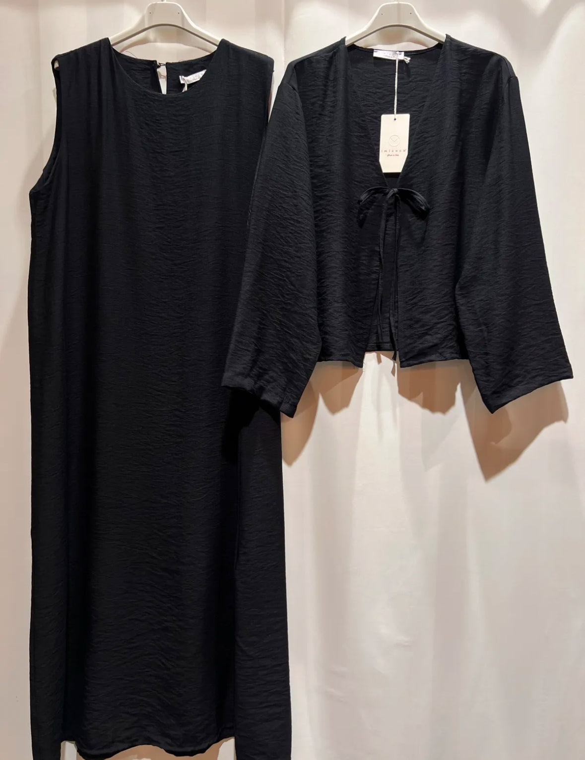 Ein sehr gemütliches und süßes Set aus einem Unterkleid ohne Ärmeln und einem Kimono mit Schleifen. Perfekt für warme Temperaturen geeignet.