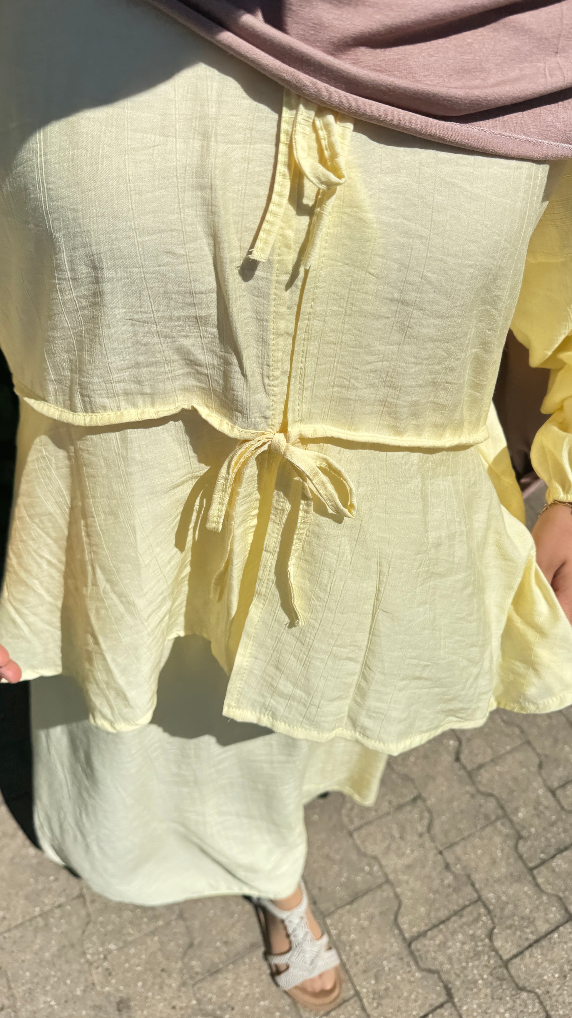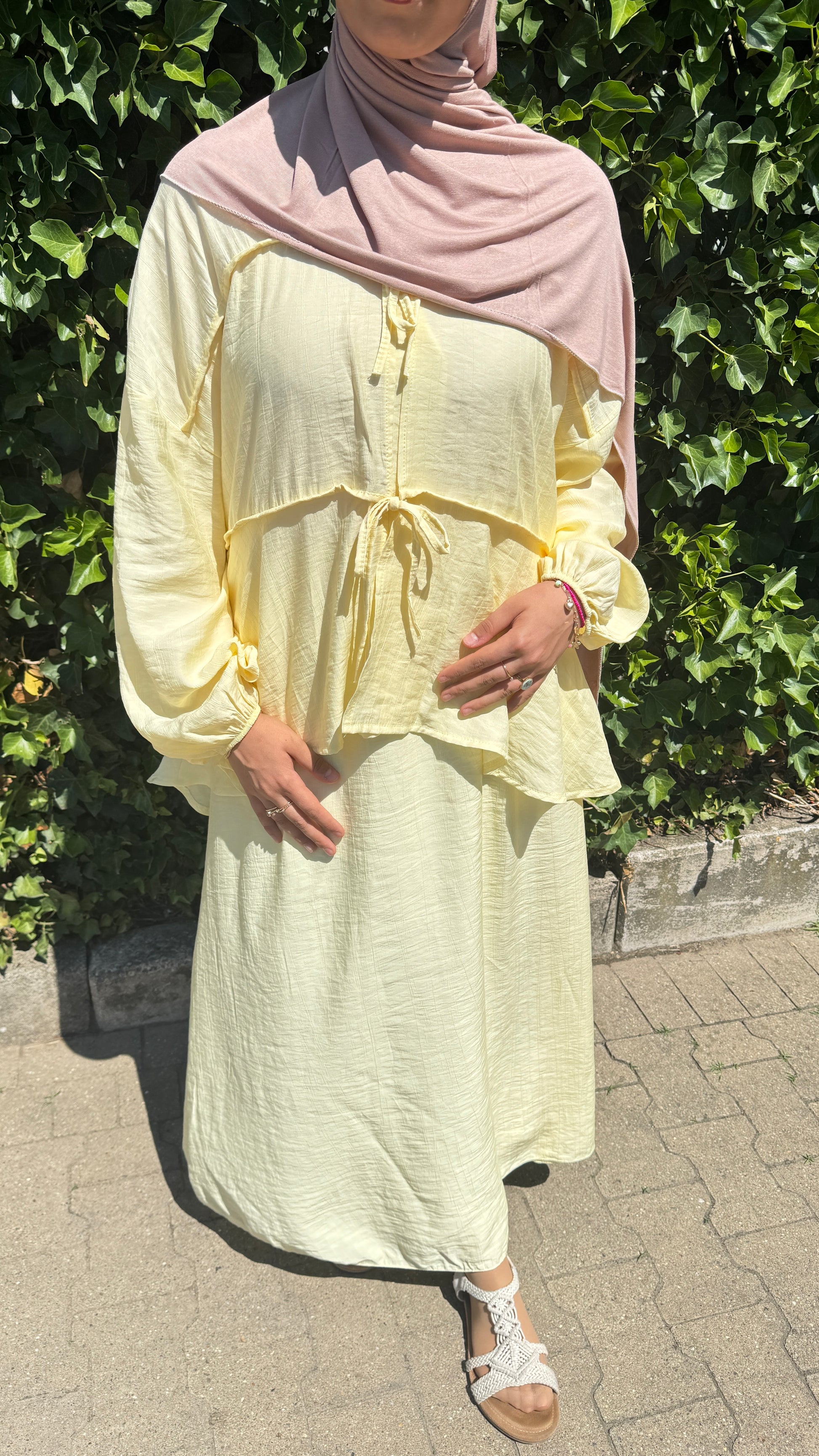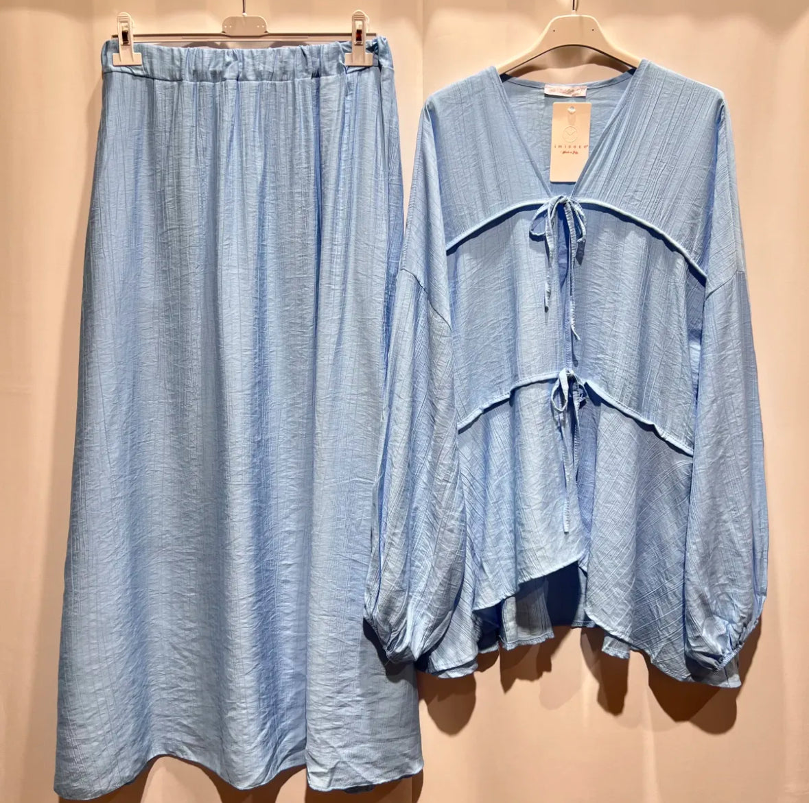 Ein sommerlicher, atmungsaktiver, lockerer und auch gemütlicher Zweiteiler, der nicht nur wundervoll aussieht, sondern mit Taschen am Rock sehr praktisch ist.