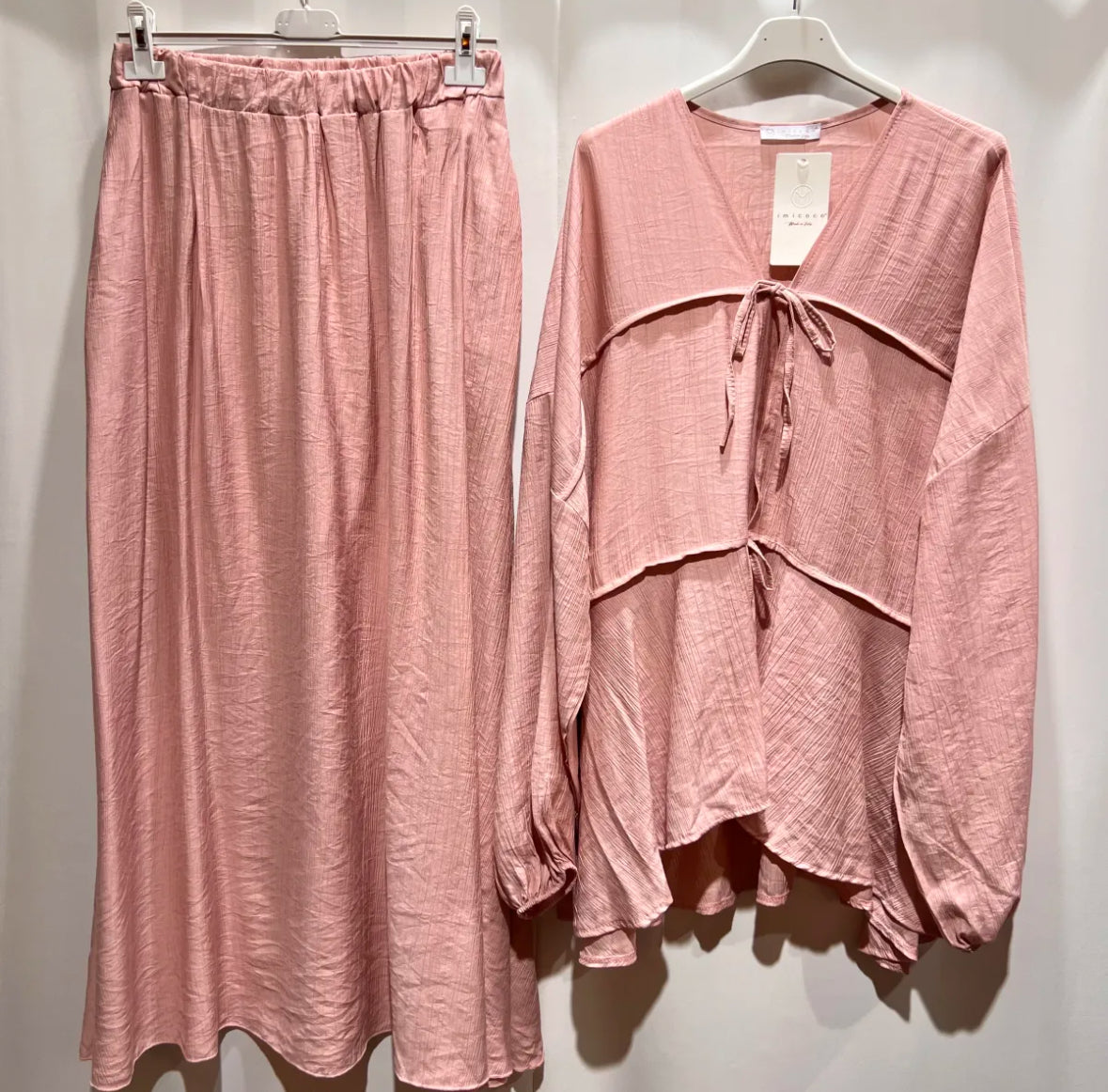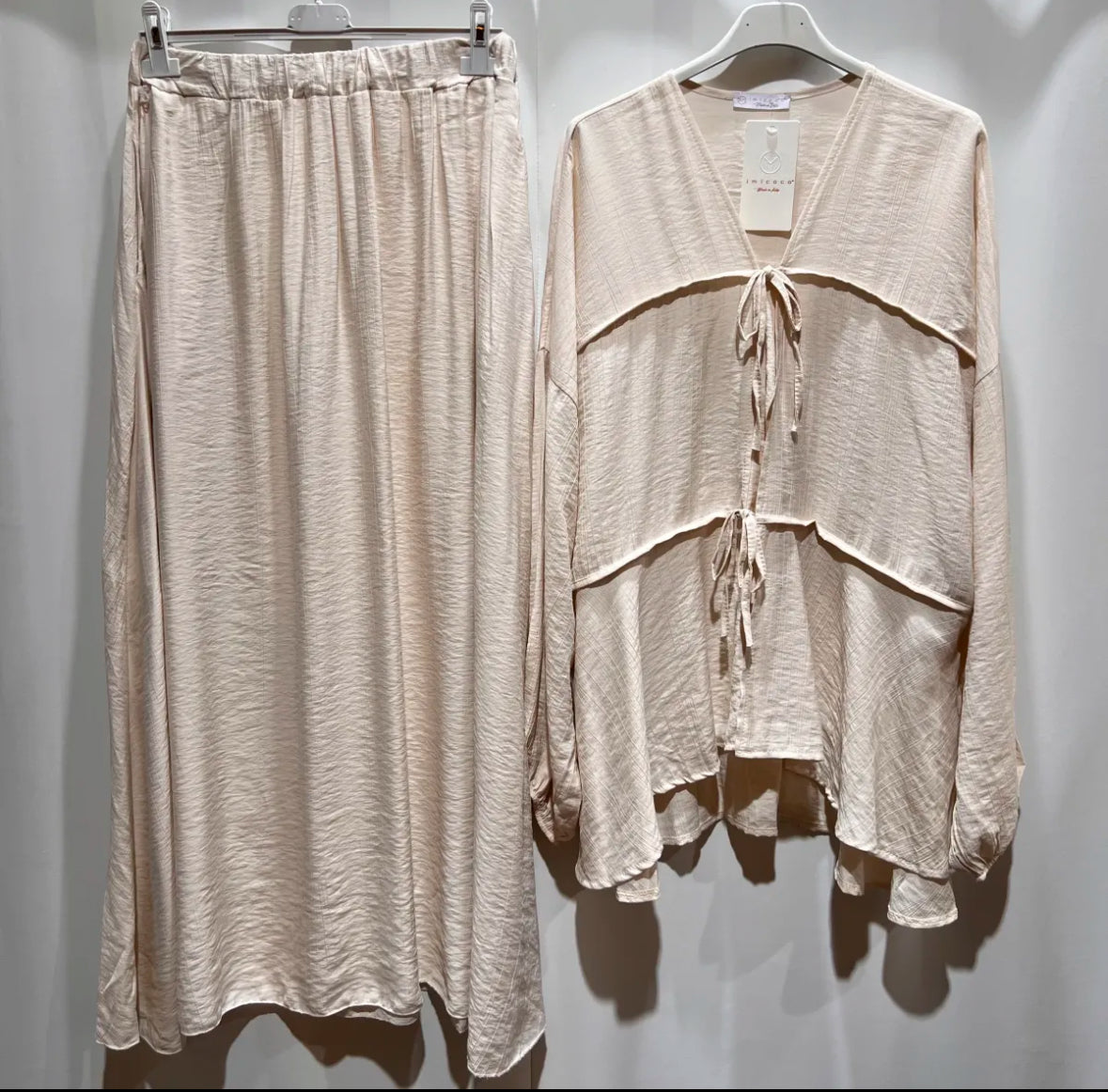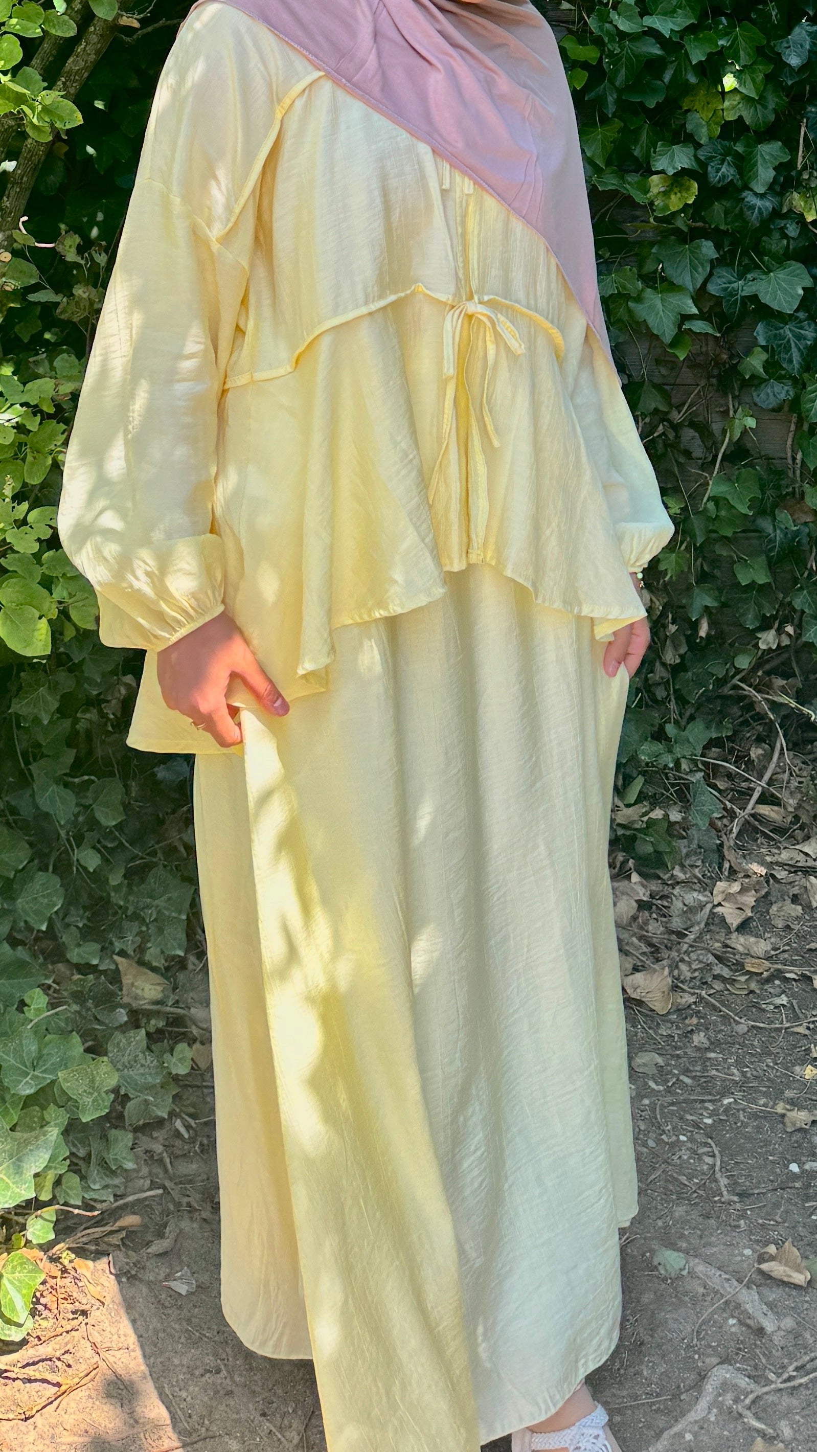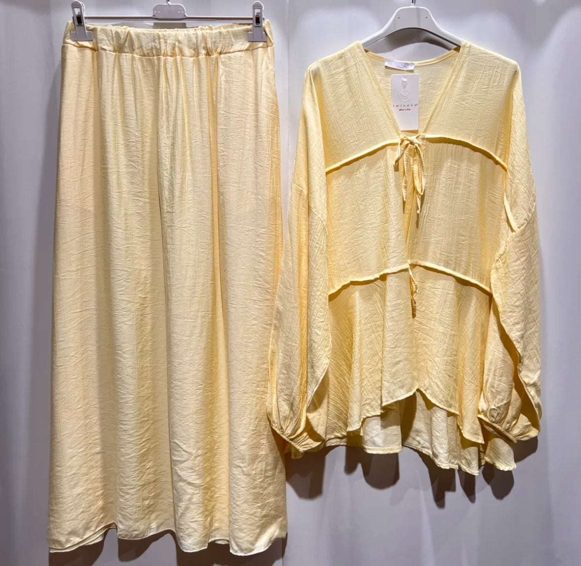 Ein sommerlicher, atmungsaktiver, lockerer und auch gemütlicher Zweiteiler, der nicht nur wundervoll aussieht, sondern mit Taschen am Rock sehr praktisch ist.