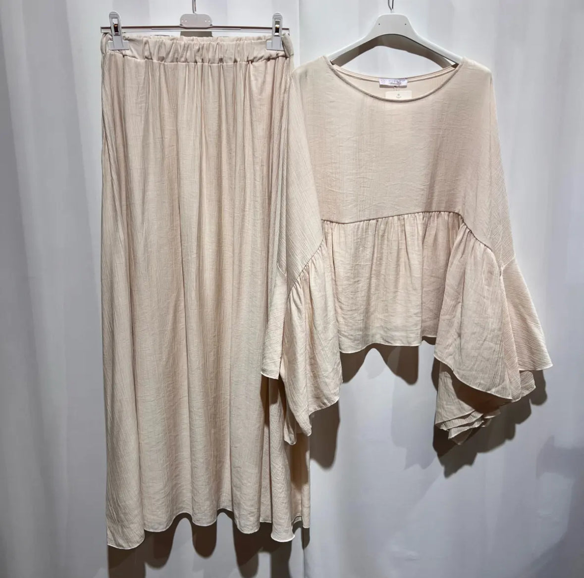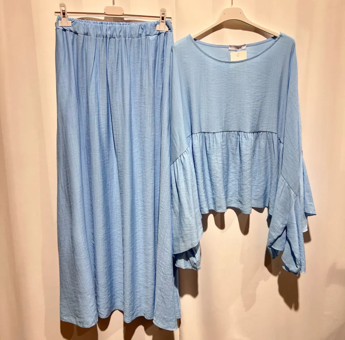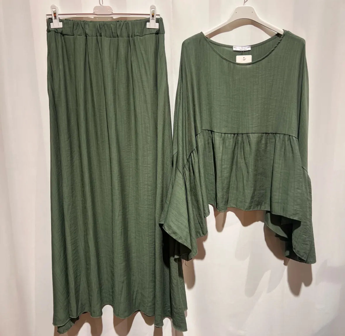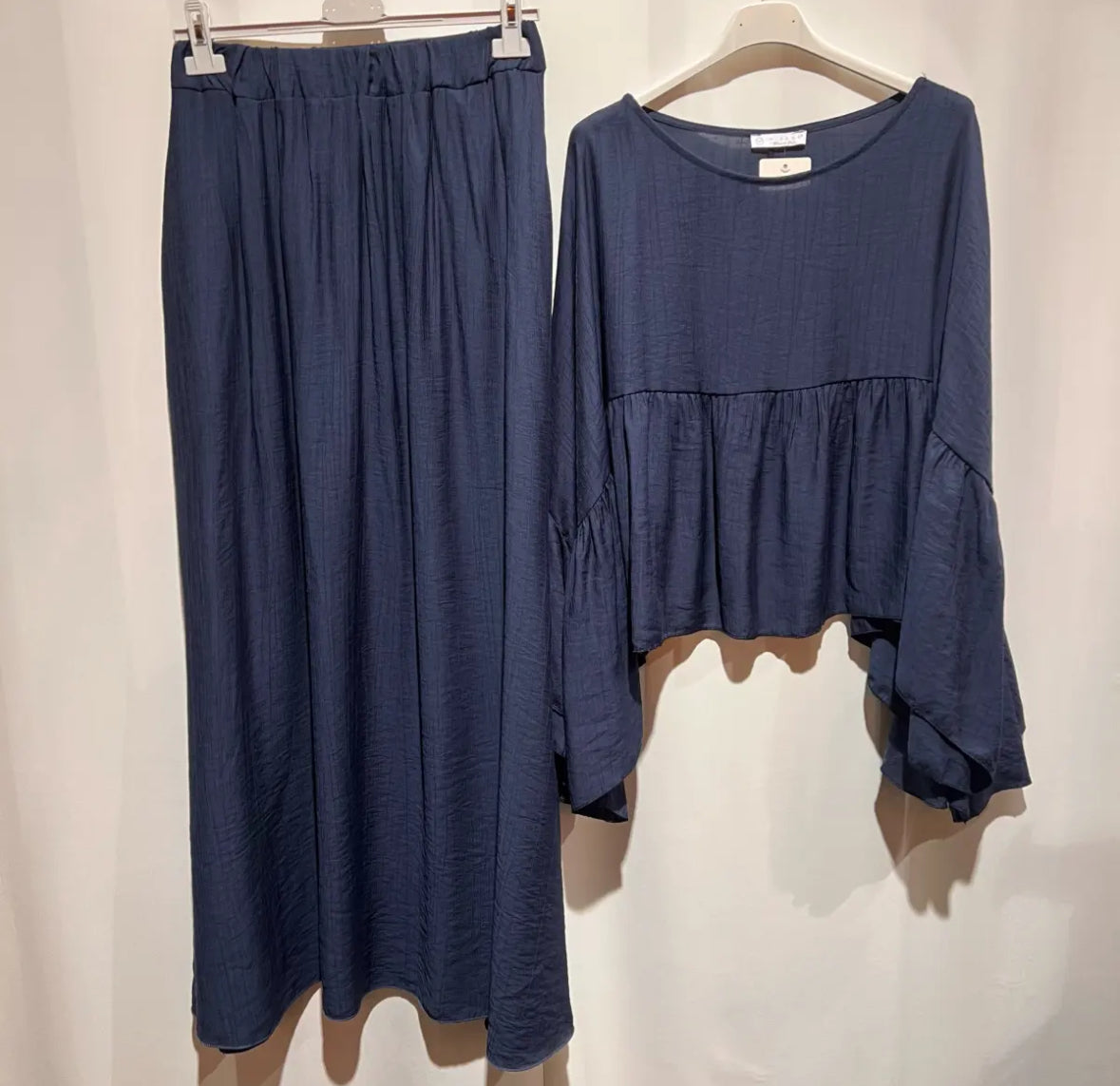 Ein schicker Zweiteiler, zusammengesetzt aus einem Rock und einer Bluse. Länge des Rocks ca. 100cm, Oberteil ca. 60cm.